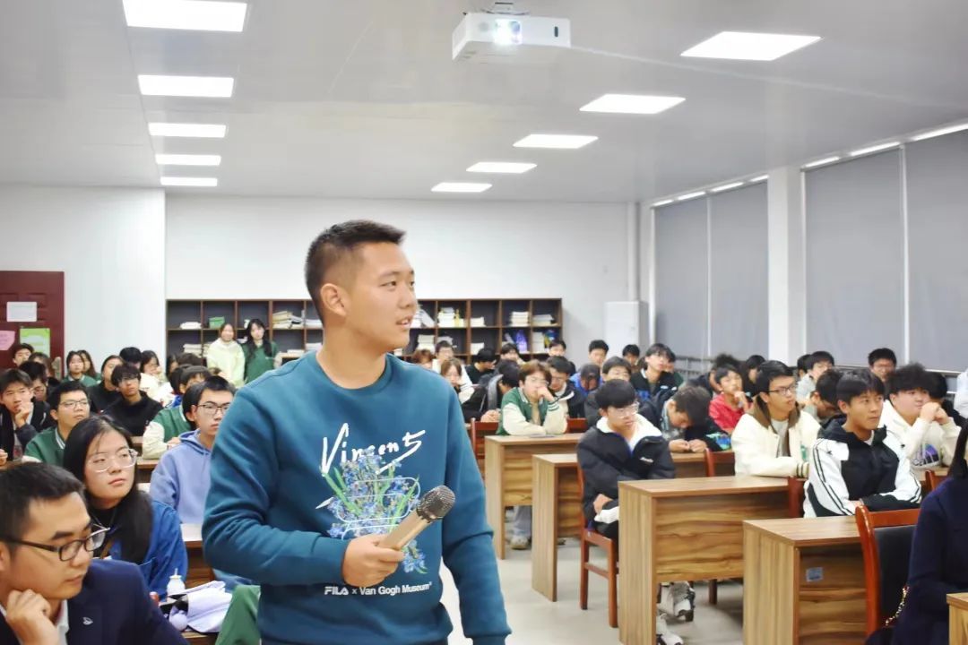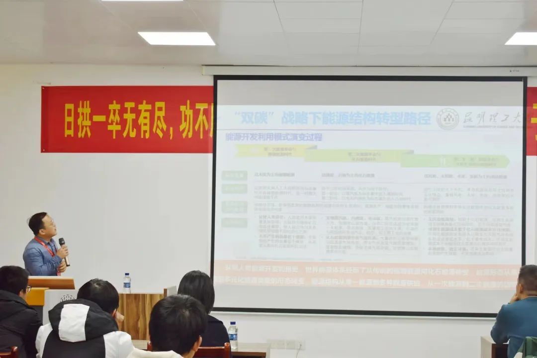 王贤树教授以“对新能源材料与器件的理解”为主题,与同学们一起研究和探讨,热火朝天。从“双碳”战略下能源结构转型路径、新能源技术应用概况、新能源电池产业概况三个方面娓娓道来,同学们都专心致志地听着,积极互动。