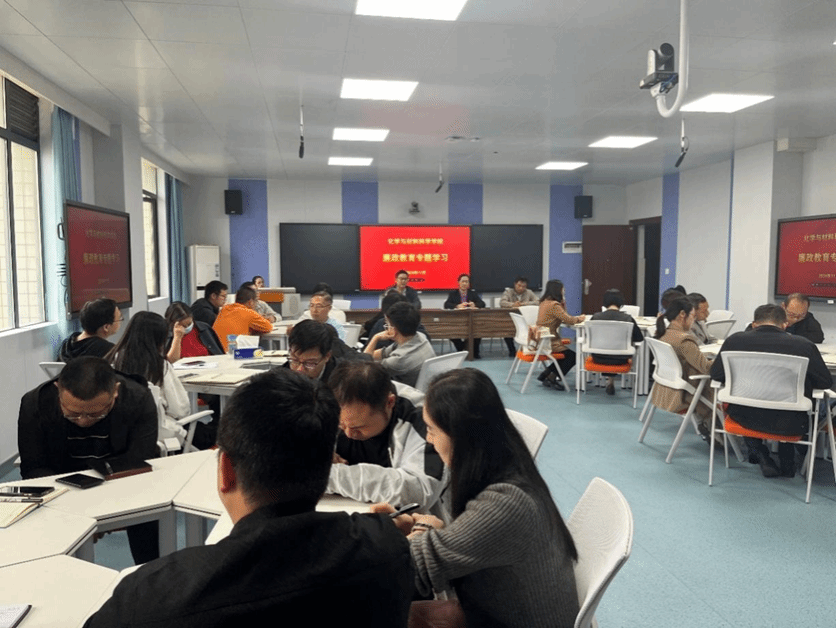 11月14日,太阳成集团tyc234cc主页全体教工在化材楼330开展师德师风专题教育学习、科级及以下干部学习贯彻党的二十届三中全会精神专题辅导培训班和廉政教育专题学习。