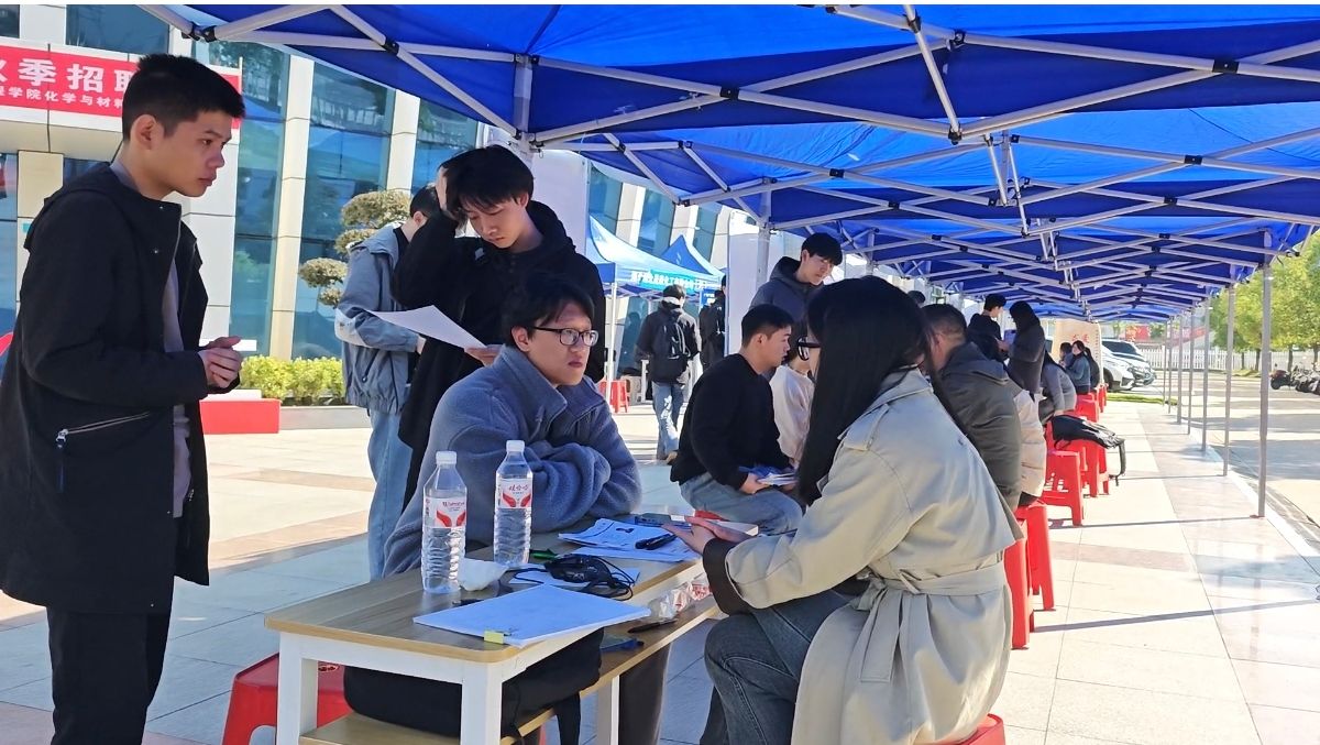 10月23日上午9:00 - 11:30,太阳成集团tyc234cc主页在公司大楼门前举办2026届毕业生秋季专场招聘会,主题为“化育英才 材筑未来”。此次招聘会吸引了17家省内外企业参与,共带来260余个就业岗位,公司领导也亲临现场与企业进行洽谈交流。