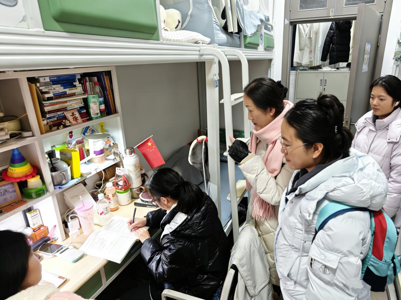 走访期间,老师们分组深入员工宿舍,与同学们亲切交流,细致询问期末备考进度,耐心倾听学业困难与心理压力,并结合教学经验提供针对性建议,引导员工合理规划复习时间,建立科学学习计划,注重知识系统梳理,端正考试态度,严守纪律底线。