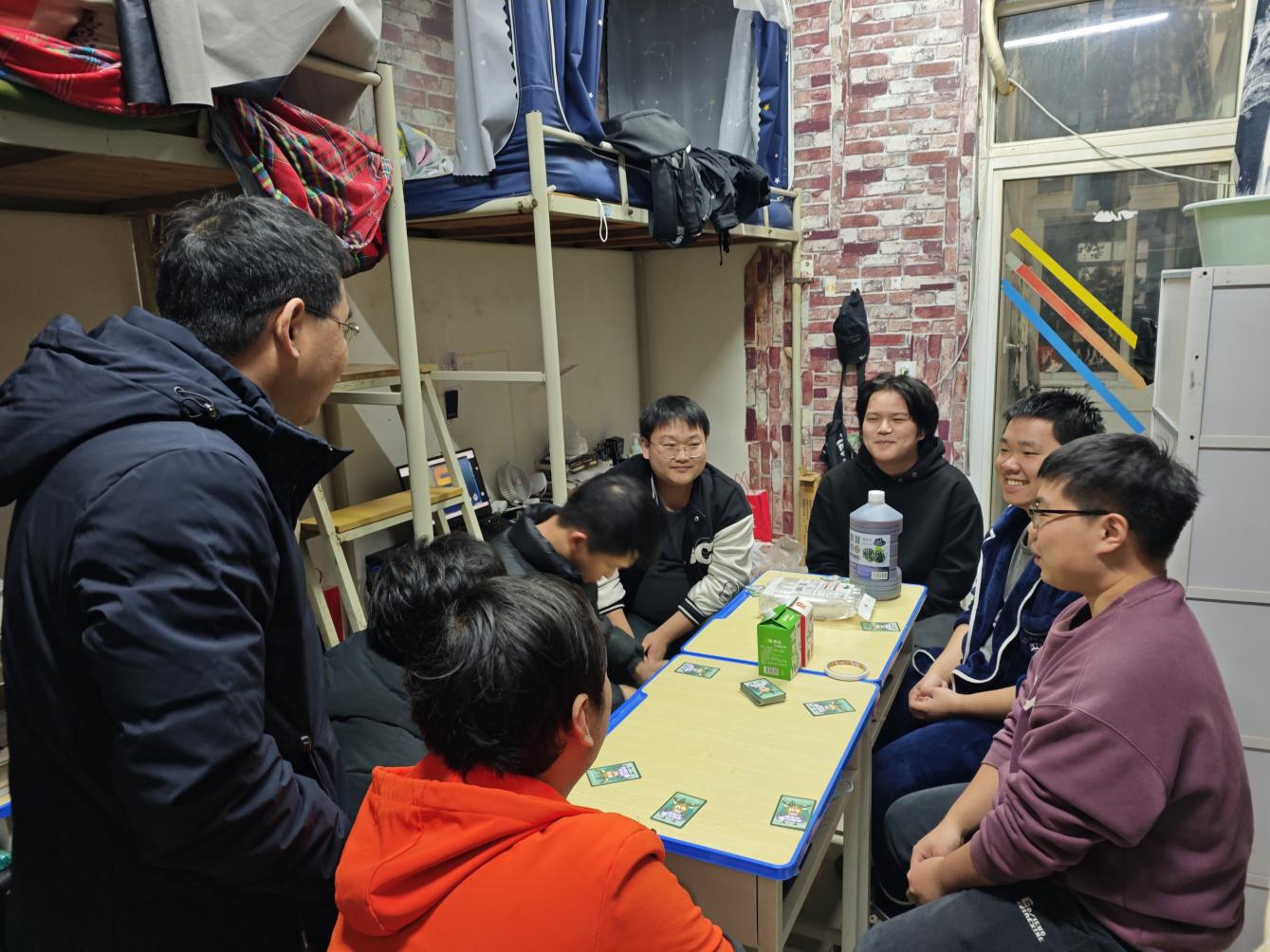 为深入掌握员工期末阶段思想动态与生活状况,全面筑牢校园安全防线,保障员工平稳、安全度过期末及元旦假期,我院于2025年12月24日组织开展元旦假期前员工宿舍走访工作。公司领导班子成员、全体辅导员及院寝管会工作人员共同参与,将关怀与安全教育送至员工身边。