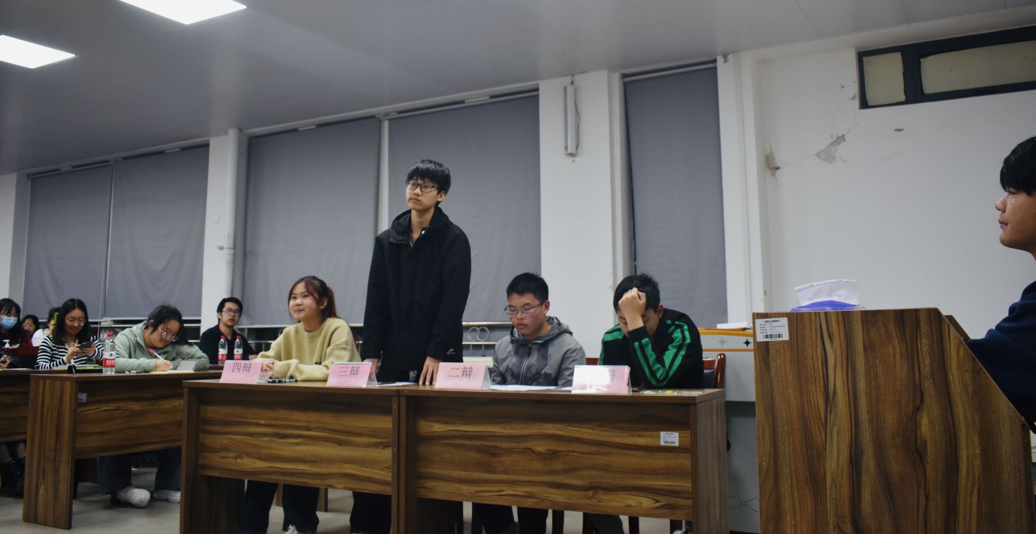 正方(22-142班)辩题为“内部安全比外部安全更重要”,反方(21-141班)辩题为“外部安全比内部安全更重要”。正方和反方各4名辩手结合当前的国际国内形势,通过摆事实、讲道理、列数据等方式阐述本方的观点。双方辩手针锋相对、各显才学,有理有据的观点辩论让每名同学感到国家安全并不遥远,而是与我们息息相关。