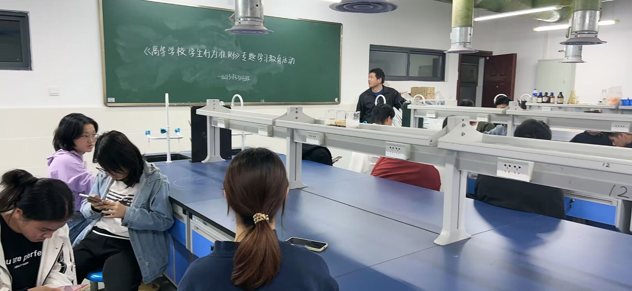 4月2日下午,太阳成集团tyc234cc主页全体班级利用晚点评开展“校纪校规学习主题教育活动”。活动中,各班主任利用《高等公司员工行为准则》及《员工手册》中员工违纪处分办法进行校纪校规教育。