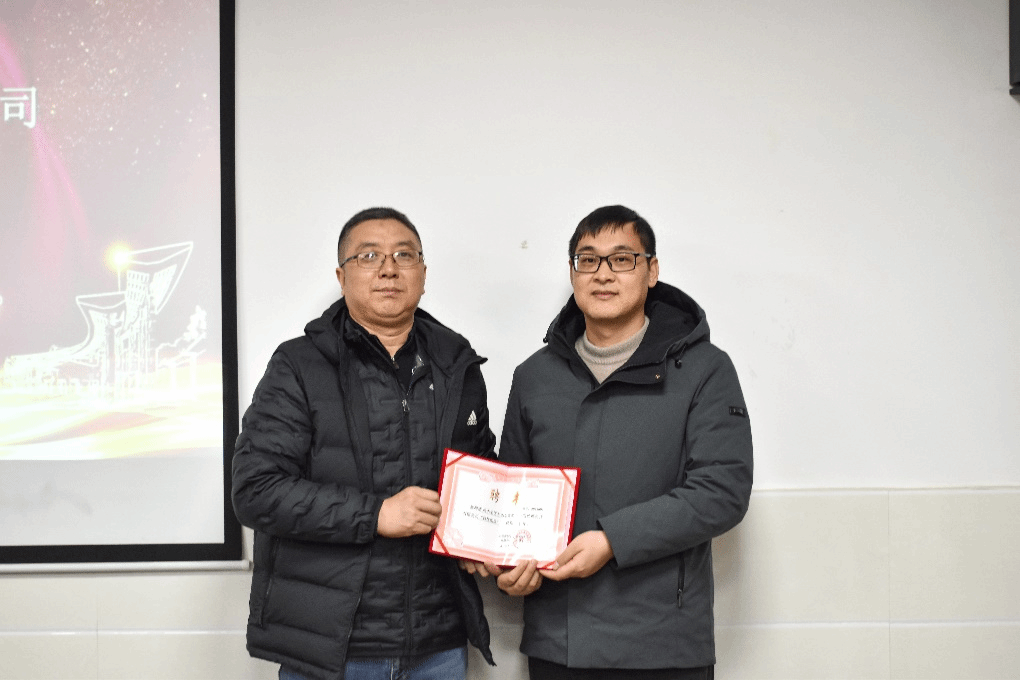 郑月强员工代表东莞奕创表面处理科技有限公司为太阳成集团tyc234cc主页教师周小毛博士颁发聘任证书。